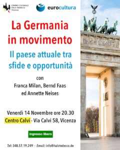 Fino a poco tempo fa, nella percezione comune, non c’era in Europa un paese che rappresentasse stabilità politica e forza economica come la Germania. I tedeschi esatti, efficienti, potenti. Verdi boschi, città silenziose, case calde e accoglienti. Scienza, poesia, musica e filosofia. Una lingua difficile ma capace di vertiginose sottigliezze concettuali. La Germania che ha fatto i conti con la storia, ieri protagonisti della più orribile tragedia e oggi tra i maggiori sostenitori dell’unificazione europea. Vale ancora questo modello? Certamente la Germania sta cambiando: è cambiata la popolazione che vede la quota dei residenti con un passato di migrazione sfiorare il 30 per cento, sta cambiando il core dell’industria con la crisi dell'automotive, è cambiata la politica con l’avanzata della destra populista. Nella democrazia più solida e pacifista dell’occidente si insinuano nuove incertezze valoriali che possono logorare dall’interno l’intero tessuto sociale. In questo incontro cercheremo di fare chiarezza tra una narrazione a volte apocalittica della Germania attuale e i dati oggettivi che dimostrano come questo paese sia ancora un polo di attrazione per opportunità di lavoro, di studio e di un’alta qualità di vita.| 20:30 | Benvenuto e introduzione | Annette Neises | Direttrice Centro Culturale Italo-Tedesco |