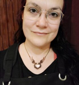 Michela a febbraio 2022, ha aperto la partita iva come artigiana, crea bijoux artistici ed esperienziali intrecciando, come fossero storie, fili di metallo, pietre e cristalli.